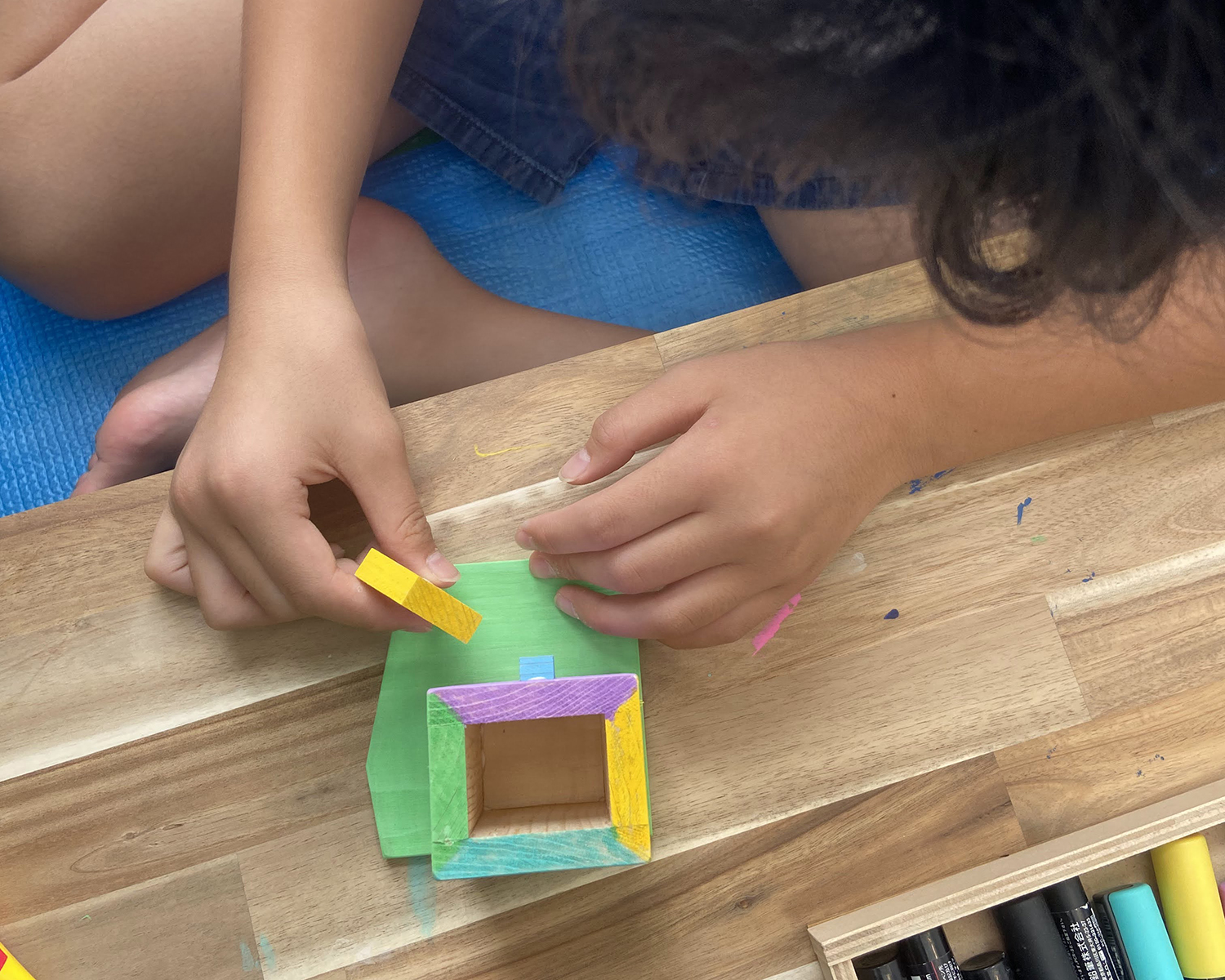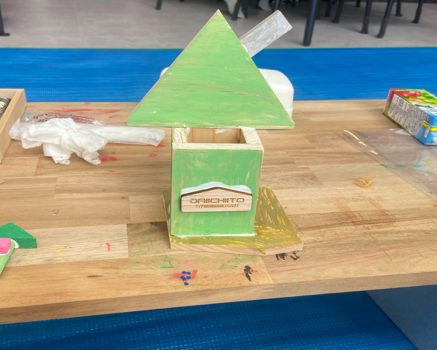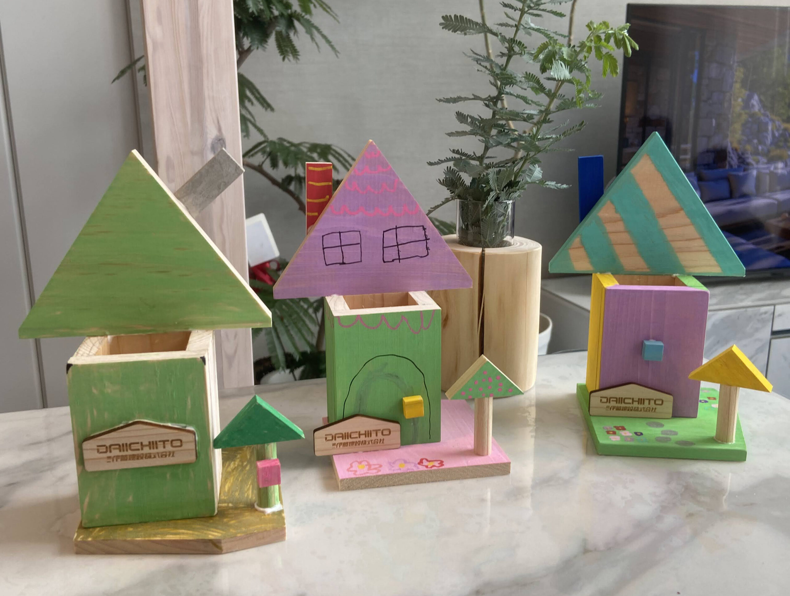 夏休み期間中の親子向けのワークショップイベントを開催。地元天竜の森についてのお話と、その間伐材の天竜スギを使ってオリジナルデザインの鉛筆たてをデザインする時間をお楽しみいただきました。小学生向けに、夏休み自由研究の資料用として森についての冊子を配布し、参加者さんたちとクイズに答えながら森のことを学びました。